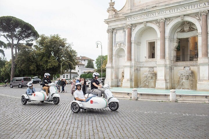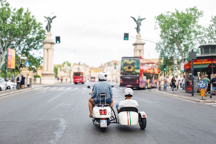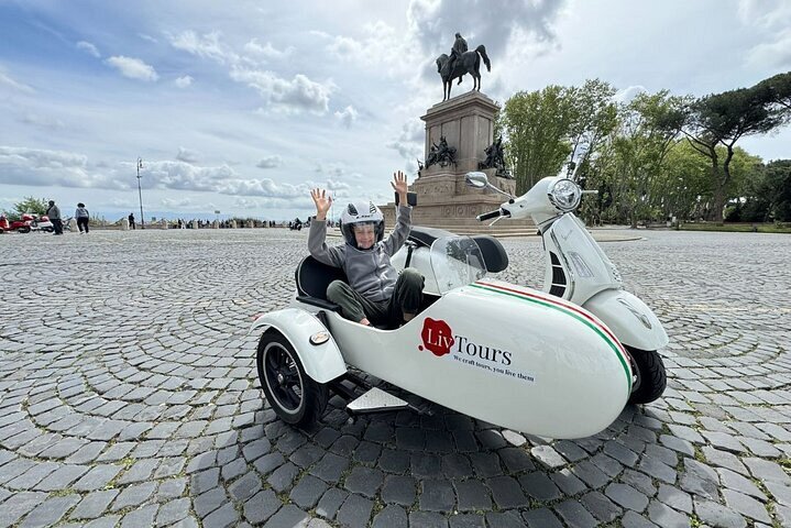À bord d'une Vespa et guidé par notre expert local, vous découvrirez la Ville éternelle avec style et confort. En seulement trois heures, vous découvrirez l'essence même de Rome. Nos side-cars spécialement conçus vous garantissent une balade luxueuse à travers les charmantes rues pavées de Rome.
