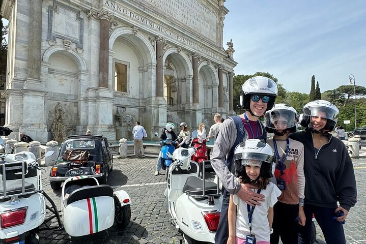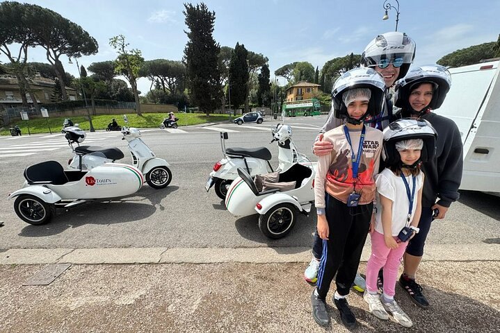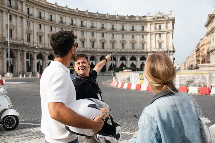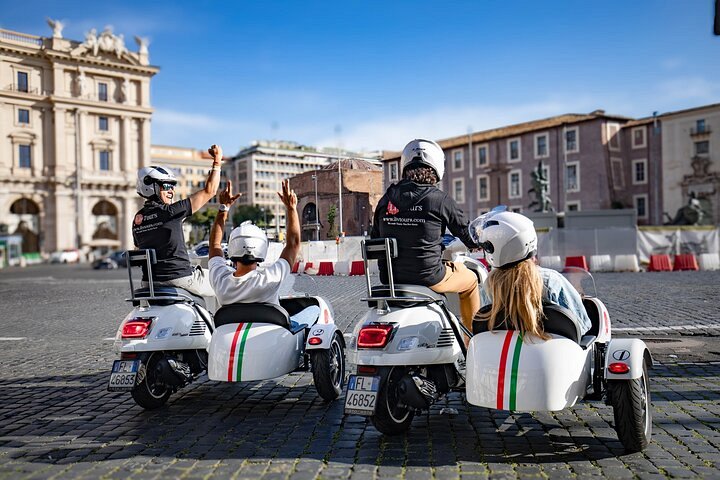 Cette balade en side-car Vespa vous offre une façon incroyable de découvrir la ville éternelle, en filant à toute allure dans les rues de Rome dans le plus pur style italien. Mais vous n'aurez pas à rivaliser avec les habitants au guidon de votre propre scooter. Vous pourrez vous installer confortablement à l'arrière d'un side-car Vespa italien spécialement conçu pour vous. Votre chauffeur expérimenté vous conduira vers la plupart des sites touristiques de la ville, ainsi que vers des joyaux cachés. Préparez-vous pour un voyage italien inoubliable. La visite commence par un tour de la Piazza della Repubblica, où vous retrouverez votre guide et votre chauffeur qui vous donneront les consignes de sécurité et vous fourniront l'équipement nécessaire pour que vous puissiez voyager confortablement. Si vous voyagez en groupe, des casques avec écouteurs vous seront fournis afin que vous puissiez écouter votre guide pendant qu'il vous fera découvrir les merveilles de la Rome antique.