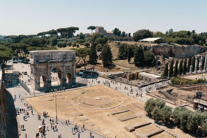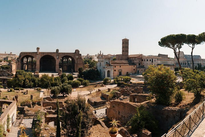 Pertama, Anda akan berjalan-jalan untuk mengagumi reruntuhan menakjubkan Forum Romawi.