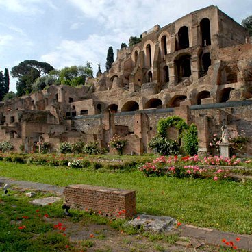 The wide, rectangular terrace of the modern Farnese Gardens covers the northern part of the Palatine Hill and is all that remains of the 16th-century buildings on the hill. In fact, this large flat area is just a kind of hanging garden hiding what remains of the home of Emperor Tiberius (14-37 AD), who was Livia's real son and also became Augustus' adopted son.